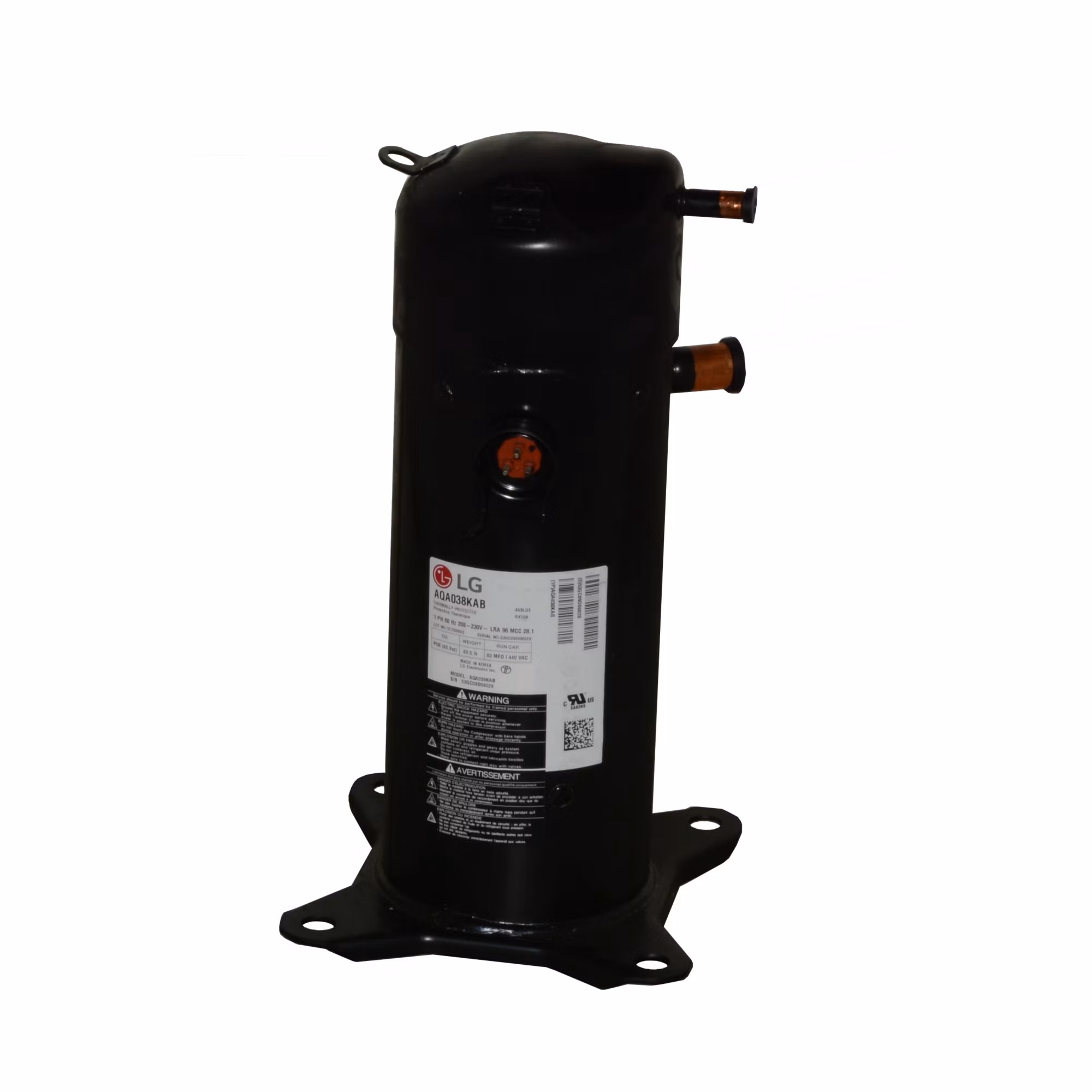 Factory Authorized Parts – AQA038KAB LG Scroll Compressor R-410A – E:Mail: sales@walkair.us to confirm availability or for volume discounts