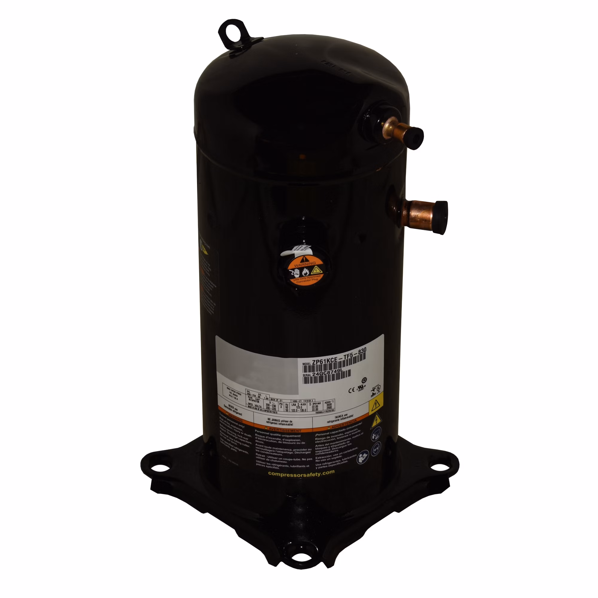 Factory Authorized Parts – ZP61KCE-TF5-830 61500 BTUH Copeland Scroll Compressor R-410A – E:Mail: sales@walkair.us to confirm availability or for volume discounts