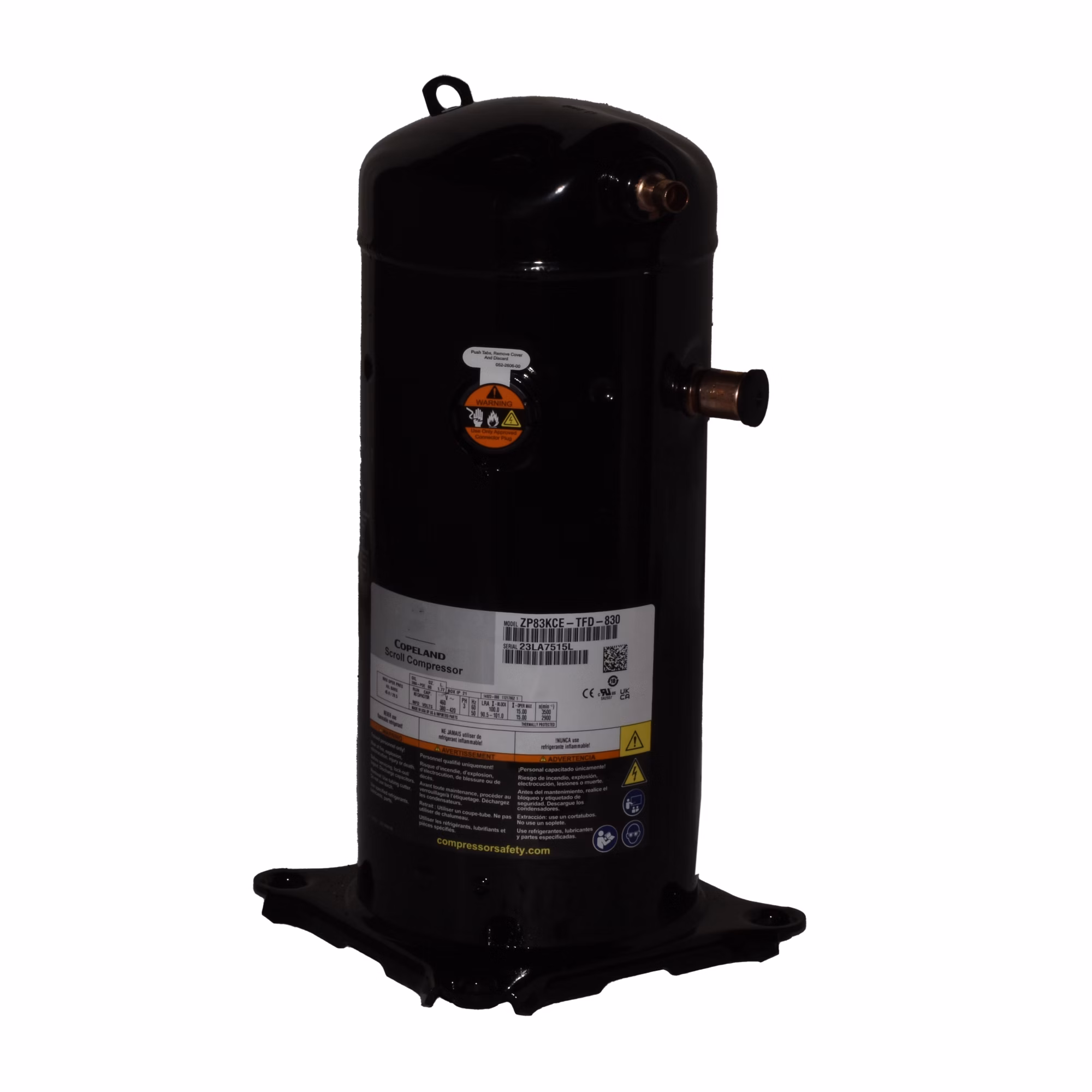 Factory Authorized Parts – ZP83KCE-TFD-830 Scroll Compressor R-410A – E:Mail: sales@walkair.us to confirm availability or for volume discounts